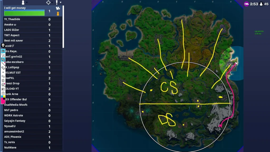 Asistencia en eliminaciones: Si has causado daño a un jugador que luego es eliminado por otro competidor, puedes recibir una asistencia en eliminaciones. Esto también te otorgará una cantidad menor de puntos. Este sistema de puntuación fue utilizado al principio del competitivo, pero hace años que no se ha vuelto a utilizar, por lo que es probable que no vuelva a servir en los torneos organizados por Epic Games, pero si puede funcionar en los torneos jugados en creativo organizado por otras organizaciones.